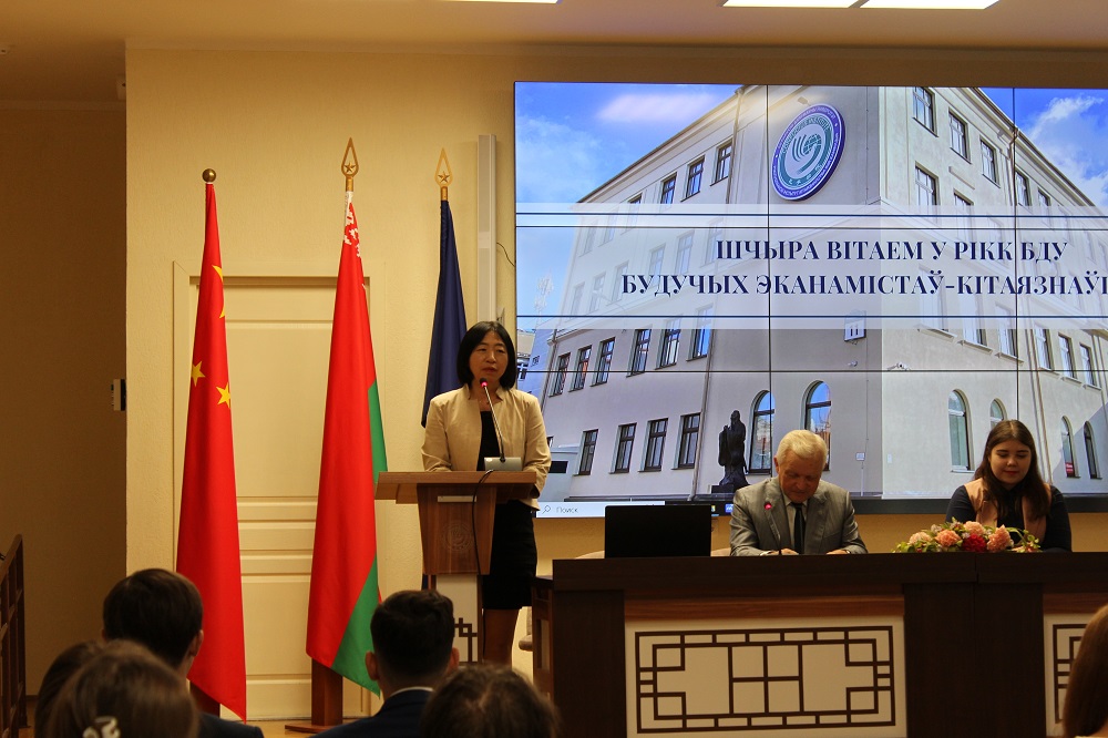 С приветственным словом к студентам обратились директор РИКК БГУ А.А. Тозик, заместитель директора с китайской стороны Лю Сулин и куратор от кафедры китайского языка и страноведения Китая РИКК БГУ А.С. Донец. Они рассказали о деятельности института, который на ближайшие пять лет станет для студентов вторым домом, пожелали им успехов в учебе и освоении китайского языка и культуры Китая и выразили уверенность в том, что в будущем новые специалисты смогут внести весомый вклад в развитие сотрудничества между Беларусью и Китаем.